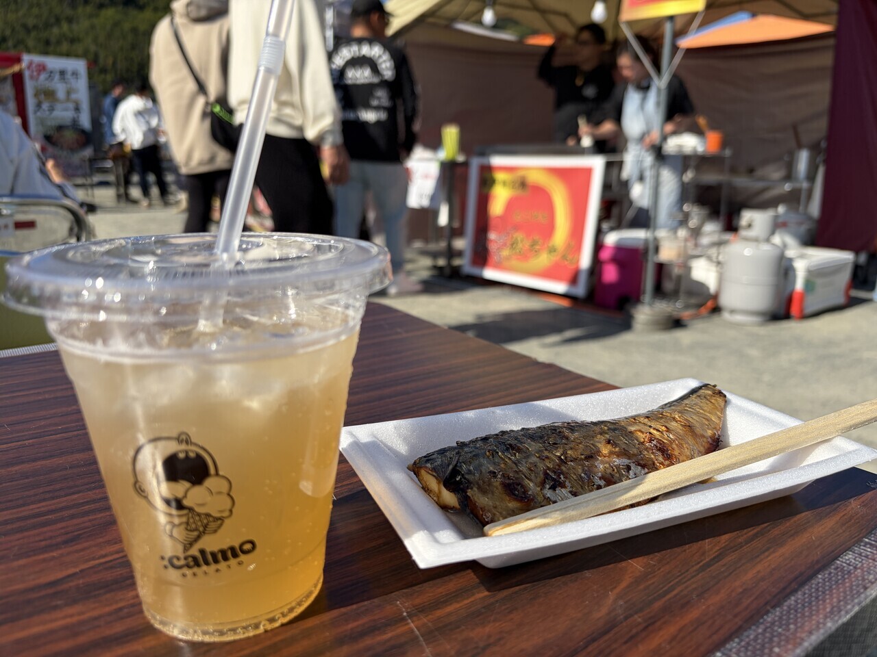 島を一周後 2 たまたまやっていた「潮騒ヨイ祭り」で焼きサバを頂き、
